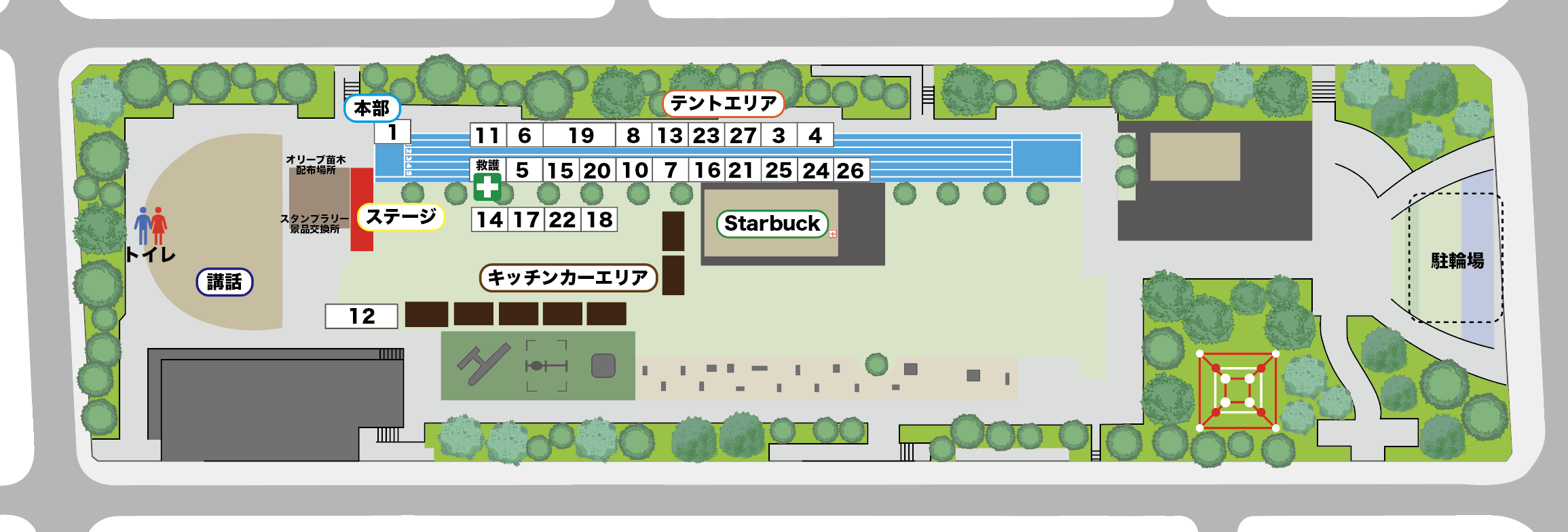 公園内では、自転車から降りてください。 ファミリースポーツ広場の駐車場は早急に満車が予想されます。 その場合は、恐れ入りますが近隣のコインパーキングをご利用ください。 また、コインパーキングに限りがあり駐車場が混みあう事が予想されます。 公共交通機関の利用や、徒歩でのご来場をお勧めいたします。 近隣の商業施設への無断駐車は、くれぐれもお控えください。 |